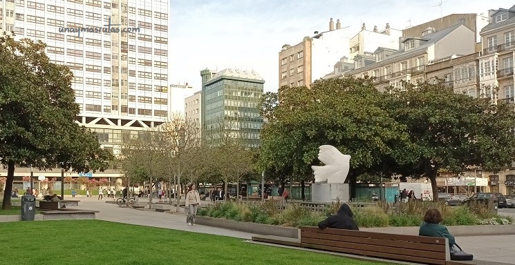 Muy cerca de la Plaza de María Pita, verás esta bonita plaza, cubierta de vegetación y muy bien cuidada -como toda la ciudad- y muy céntrica.