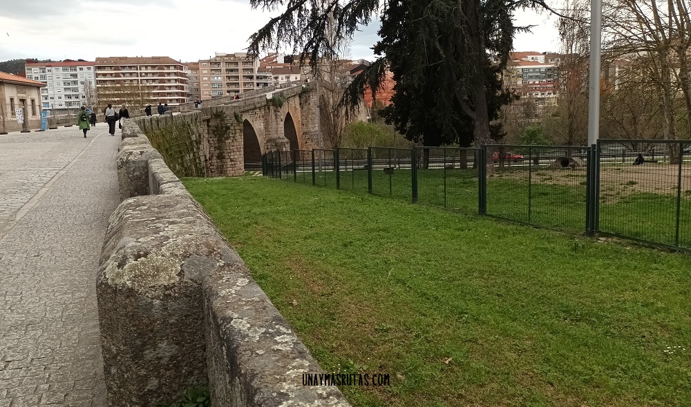 El Puente Viejo alza a un lado de la Plaza Don Bosco y de un animado espacio verde entre