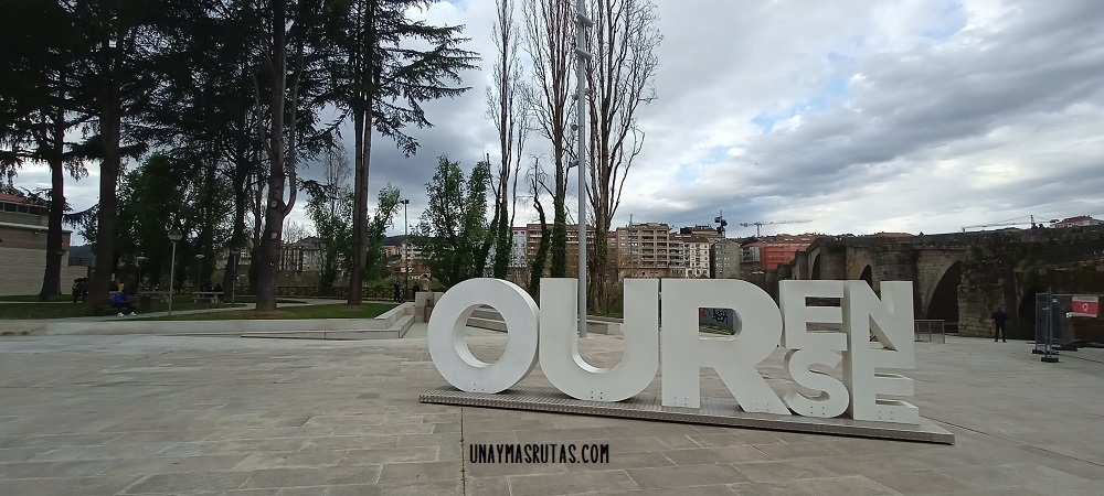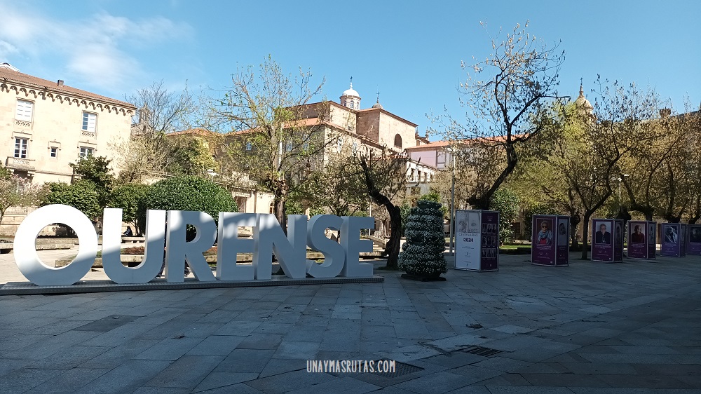 Más adelante, recorriendo la ciudad para ir hacia la catedral, nos encontramos con estas imponentes letras de «Ourense» en la Plaza Obispo Cesáreo, ubicado en frente del conocido parque de la Alameda, que por cierto, forma parte de él.