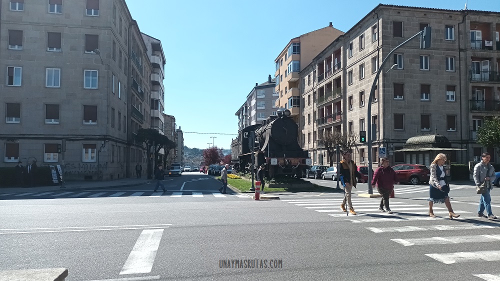 Una de las cosas que ver en Ourense es esta locomotora afincada en una de sus calles principales. Y está allí, porque el sistema ferroviario formó parte del acervo cultural de la ciudad, especialmente vinculada al barrio A Ponte y también porque es conocido que Orense es la ciudad de Galicia con más ferroviarios.