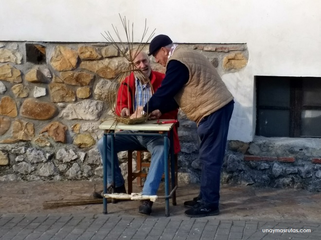 Y hablando de experiencias que resultan tan simpáticas, les presentamos a Luis. Luis es artesano de Benia de Onís, lo encontramos en este día de otoño explicándole con unas ganas que contagian a un vecino y aprovechando para comentarnos lo que disfruta enseñando. Buena manera y distinta manera de pasar un rato.