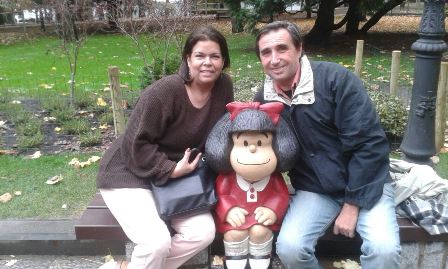 Logramos tomarnos la  foto con Mafalda que a pesar del invierno nos hizo esperar por una pequeña cola para tenerla solo para nosotros. Pero para los que somos sus admiradores, eso no es nada. Felices de sentarnos con ella.