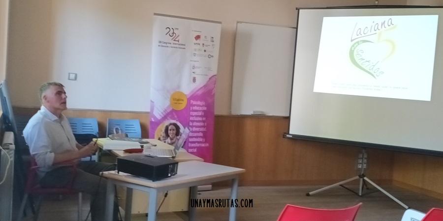 Poli en su exposición sobre la asociación Los cinco sentidos
