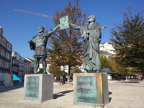 Lugo, capital de provincia y del municipio que llevan su nombre. En el recorrido que hicimos   del casco histórico en buena parte del día, descubrimos su  arquitectura, agradables paisajes y un conjunto  escultórico que resaltan su entorno. Pero además, lo más representativo de ella, es su muralla romana.