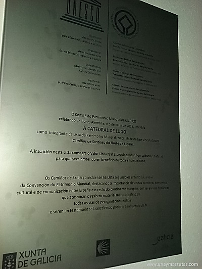 La Catedral de Santa María de Lugo, fue declarada Patrimonio de la Humanidad por la UNESCO por tratarse de un bien integrado al Camino de Santiago en el norte de España. Si quieres más información sobre la ruta jacobea, la peregrinación a Santiago de Compostela y los bienes culturales objeto del reconocimiento de la UNESCO, puedes hacer clic  aquí