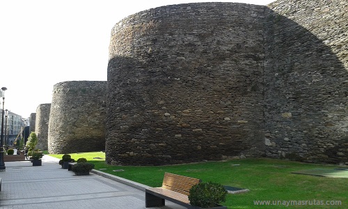 La muralla romana de Lugo, declarada Patrimonio de la Humanidad por la UNESCO en el año 2000, conserva  su perímetro alrededor de todo el casco histórico. Con toda facilidad podemos recorrerla, llevando nuestros pasos hasta la zona más preciada:  la ronda que se extiende por los lados de la Catedral.