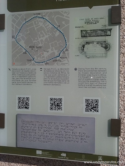 Son muchas las muestras grandiosas y bien conservadas de la arquitectura romana, además de la única muralla que en la actualidad se conserva completa,  adyacente a la Catedral y en la praza Santa María descubrimos esta ventana que nos exhibe una piscina romana del siglo IV