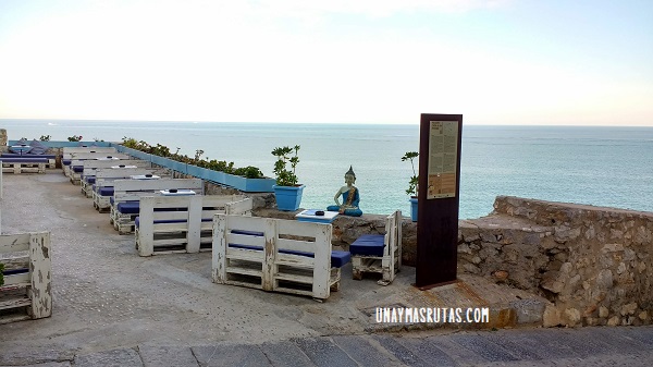 El recorrido del recinto amurallado se hace en poco tiempo, dependiendo de los momentos que disfrutas, los espacios que quieres fotografiar y los restaurantes y bonitas terrazas que te atrapen, como esta que mostramos a continuación. Hay mucho que ver en Peñíscola, solo déjate llevar.