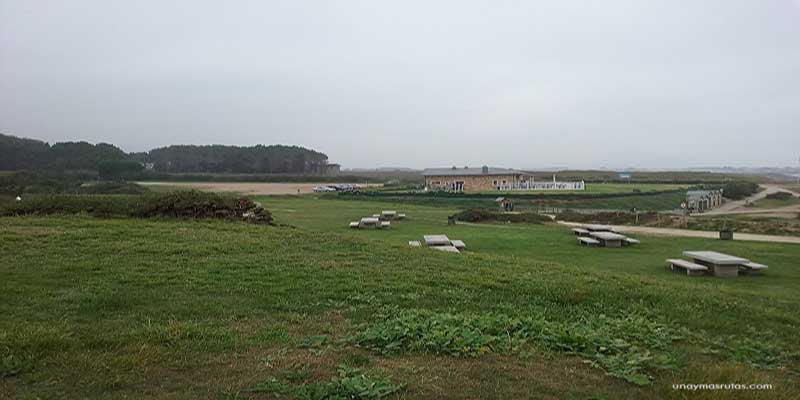 Con un amplio parking, zona como la que se ve aquí para merendar cómodamente y un poco más allá un restaurante, encontramos una primera y muy buena impresión de la playa