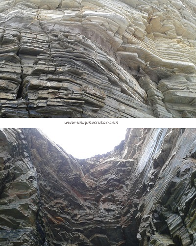 Dentro de una de ellas, observamos con más detalles la formación rocosa y, dependiendo del lugar en el que estuviéramos y a pesar del poco sol que había este día, podíamos notar como cambiaba de color algunas áreas de las piedras