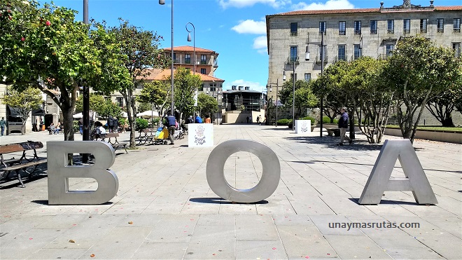 Estas letras que representan tan bien a la ciudad significa Buen Pueblo escritas en gallego: Boa Vila con una particularidad y es que se encuentran una a un extremo de la otra entre la calle Soportales y la plaza Curros Enríquez, en el Paseo Antonio Odriozola, una de las principales zonas del casco antiguo.