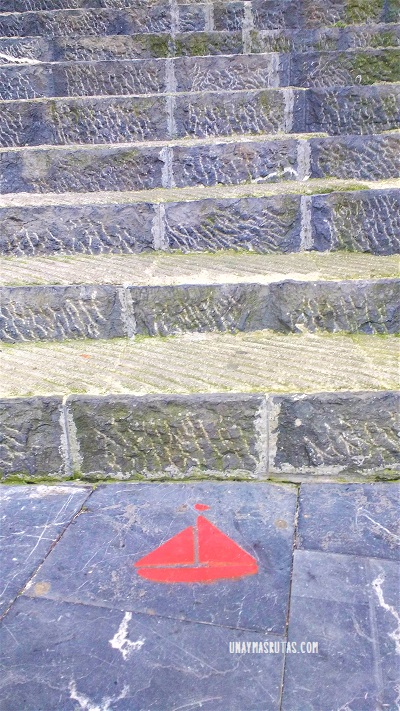 Aquí ves cómo ha sido prevista y organizada la visita. Esos barcos de colores pintados en el suelo nos indica por dónde comenzar y continuar en estas rutas.