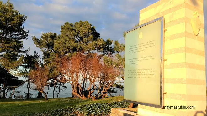 En esta placa leemos que la Península de Magdalena por acuerdo del Ayuntamiento de Santander se convirtió en residencia estival de los Reyes de España.