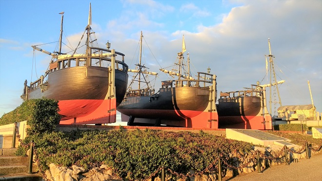 La explicación de magnífico museo al aire libre la encontramos aquí: «Estos galeones fueron construidos con espíritu romántico, fe y voluntad en Los Andes, Alto Amazonas, Ecuador. Rememorando a Francisco de Orellana. Navegando el Amazonas y surcando la mar oceana. Ofrenda de unos hombres a la humanidad. ´La fe es la barca pero solo los remos de la voluntad la llevan`. Vital Alsar Ramírez».