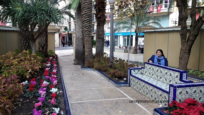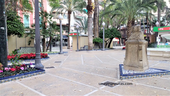 La Dama de Elche la encontramos sin saberlo en la Plaza La Glorieta que este bonito lugar de tanta armonía que vemos en plantas, flores y arbustos en el centro de la ciudad.