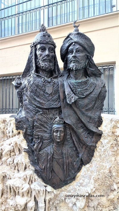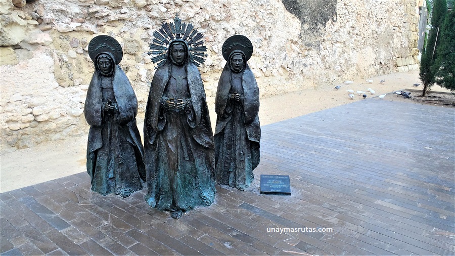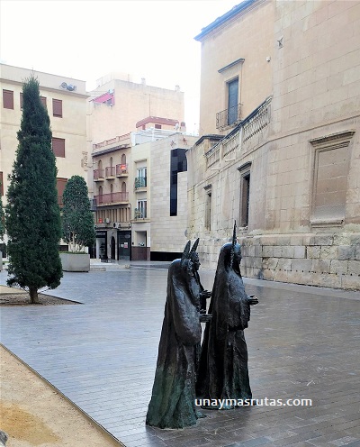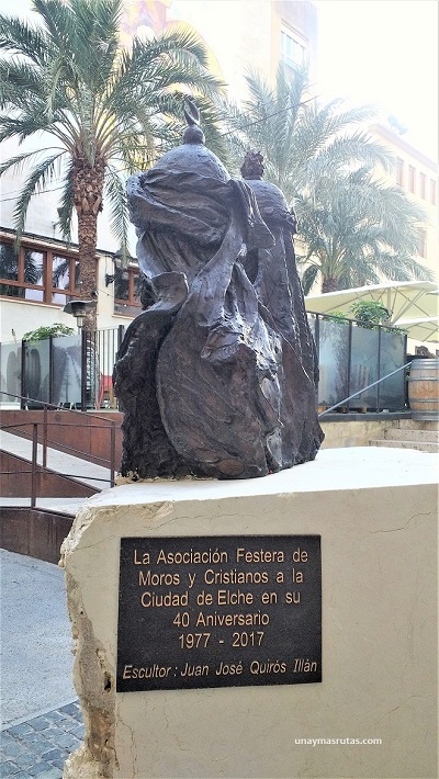 La primera de ella, arriba, se llama Las 3 Marías y se encuentra en la plaza Santa María y las siguientes representan las fiestas de Moros y Cristianos organizadas por la asociación que lleva su nombre. Estas esculturas son muestras del gran contenido escultórico extendido por toda la ciudad.