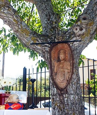 Sobre la historia de este particular buda de Molinaseca, hemos encontrado que en 2010 en un viaje a la Ruta de los 88 Templos de Shikoku, los representantes de Molinaseca conocieron al escultor, Bonkai. Allí nació el hermanamiento que dio lugar al monolito del que hablamos más arriba y la iniciativa de lograr una obra tallada de Bolkai.