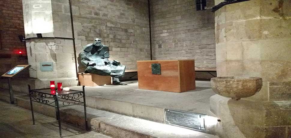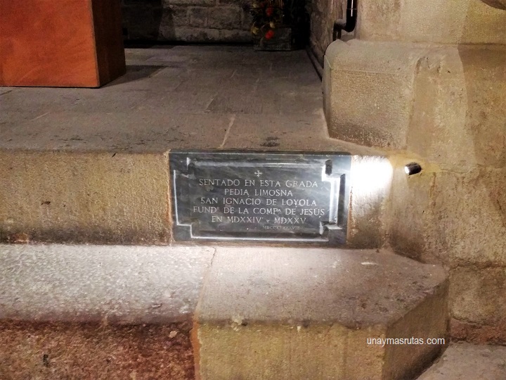 Sin embargo, lo que más nos llamó la atención fue la reseña en la placa que está en la parte inferior: «Sentado en esta grada pedía limosna San Ignacio de Loyola, fundador de la Compañía de Jesús en MDXXIV y MDXXV».