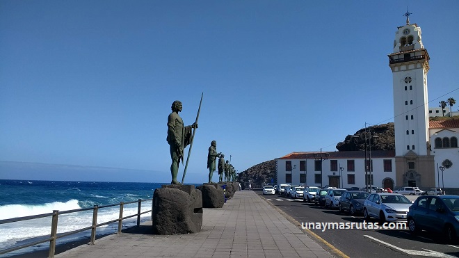 Antes de la conquista de Tenerife en 1492, la isla estaba dividida en nueve reinos o menceyatos, gobernados por menceyes. Los guanches en Tenerifese refiere a este conjunto escultórico conformado por 9 esculturas que representan a cada uno de los menceyes y que se disponen a lo largo de este paseo marítimo junto a la Basílica de Nuestra Señora de La Candelaria en la Plaza de la Patrona de Canarias.