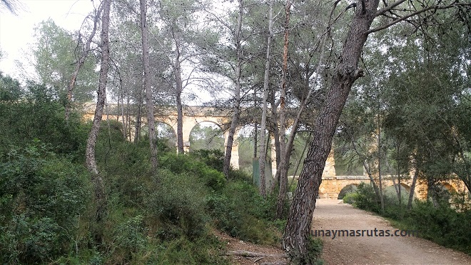 Luego de unos cinco minutos de caminata,  podemos ver el acueducto. Lo que vemos aquí, el Pont del Diable es solo una parte del inmenso acueducto que surtía agua hacia Tarraco desde río Francolí.
