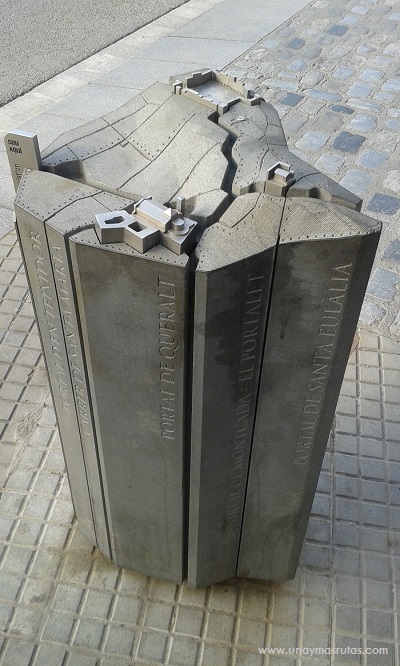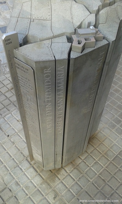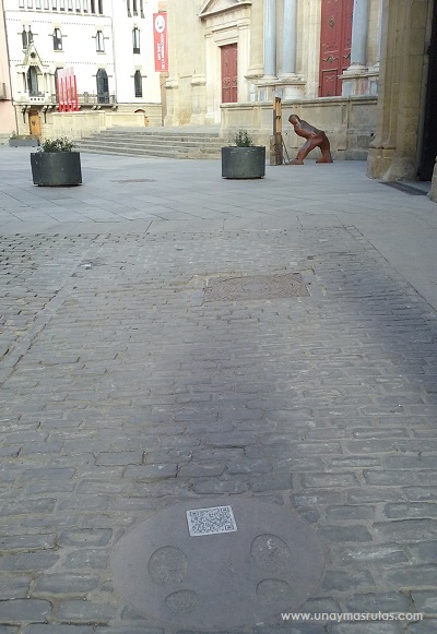 Dejamos atrás la Plaza de la Catedral, despidiéndonos de esa curiosa escultura que vemos en las fotos de arriba y en la próxima y andando por la Carrer de Santa María continuamos el recorrido, no sin antes advertir el código QR que como pueden observar lo descubrimos en el suelo, a pocos metros de la Catedral