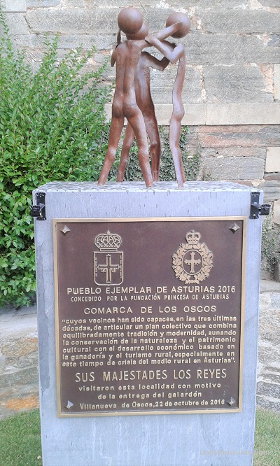 La imagen que vemos a continuación es la del Monasterio de Santa María de Villanueva de Oscos, justo en su frente fue develada la placa del homenaje a la Comarca